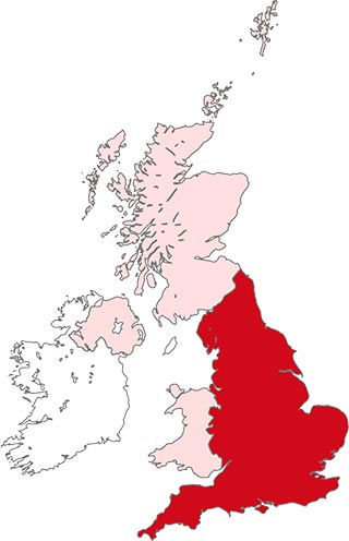 Sharing land borders with Scotland to the north and Wales to the west; the Irish Sea is to the north west, the Celtic Sea to the south west and the North Sea to the east, with the English Channel to the south separating it from continental Europe - England comprises the central and southern part of the island of Great Britain in the North Atlantic.