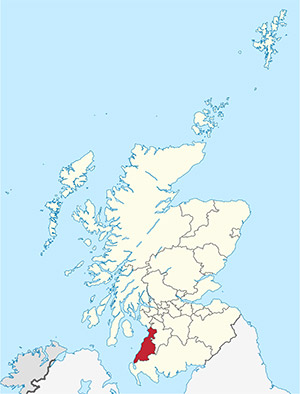 South Ayrshire (Scots: Sooth Ayrshire; Scottish Gaelic: Siorrachd Inbhir Àir a Deas) is one of thirty-two council areas of Scotland, covering the southern part of Ayrshire. Geographically, South Ayrshire is located on the western coast of Scotland, sharing borders with neighbouring local authorities East Ayrshire, Dumfries and Galloway and North Ayrshire. Its main towns are Ayr, Prestwick and Troon.